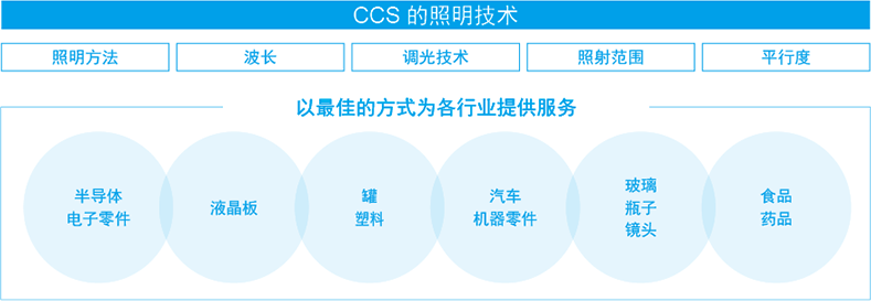在圖像處理用LED光源領(lǐng)域里,顧客選擇CCS產(chǎn)品的理由是,CCS擁有豐富的照明解決方案和強(qiáng)大的產(chǎn)品開發(fā)能力。為了滿足顧客要拍攝各種圖像和解決各種問題的需要,我公司從超過1,500種的豐富產(chǎn)品陣容中,為您選出最佳光源。此外,CCS還根據(jù)顧客的需 求,提供樣機(jī)的制造及定制光源的設(shè)計開發(fā)等服務(wù)。 自1993年成立以來,CCS已取得50,000件以上被測物體成像和10,000多種定制光源的設(shè)計、開發(fā)、制造業(yè)績,躍居行業(yè)領(lǐng)先企業(yè)。CCS以長期積攢下的光學(xué)、散熱、控制、評估等專有技能和技術(shù)經(jīng)驗為基礎(chǔ),為顧客提供“最佳光源”。