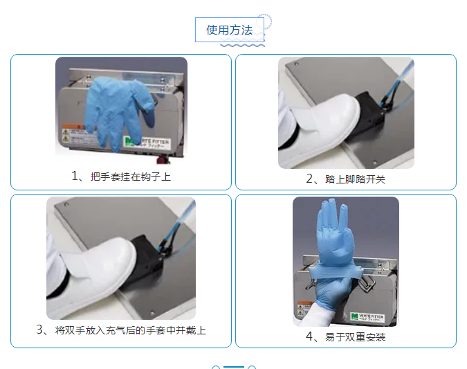 KGW-E01電動半自動手套佩戴裝置的工作原理是用空氣擴大橡膠手套,安裝方便,雙重佩戴方便。 由于它是AC100V電源規(guī)格,因此可以在沒有工廠空氣的環(huán)境中使用。
