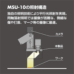 平行光同軸照明MSU/MFU series:用于檢測(cè)鏡面物體的劃痕、破損和污垢。這種平行光光學(xué)單元是為檢測(cè)反光表面上的細(xì)小裂紋、凹痕和污損而設(shè)計(jì)的。