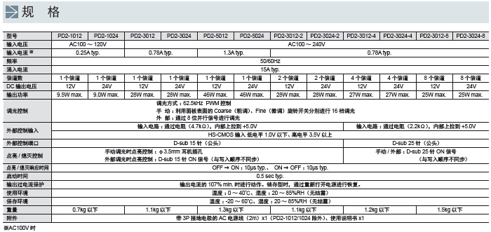 可根據(jù)使用的LED光源的輸入電壓,從12V到24V型中進(jìn)行選擇。