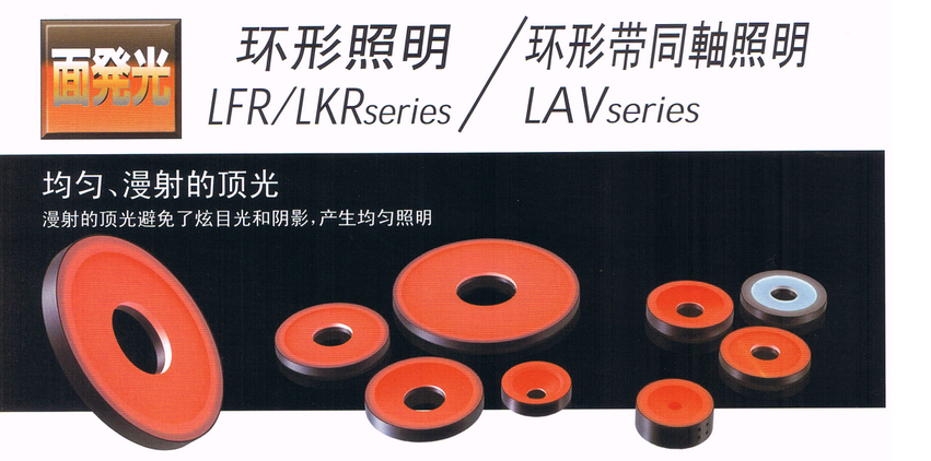 LFR/LKRseries LAVseries環(huán)形帶同軸照明:均勻的擴(kuò)散光照射.通過獨特的導(dǎo)光方式避免了眩目光和陰影,產(chǎn)生均勻照明.